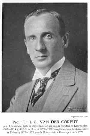 CORPUT, Johannes Gualtherus van der, getaltheoreticus en specialist in asymptotiek (Rotterdam, 4 september 1890 - Amsterdam, 13 september 1975). Zoon van Gualtherus Johannes, grossier in koloniale waren, en Anna Maria Blomjous. Tijdens de bezetting actief in landelijk Hooglerarenverzet en bij plannen tot vernieuwing van het hoger onderwijs in de wiskunde. Gehuwd op Koninginnedag 1942 met Jeannette Cornelia Houwink (geboren 1898), dr. (rechten) en auteur.