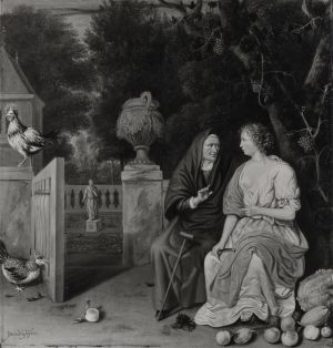 Vertumnus en Pomona, door Johanna van Frytom, eind 17e eeuw (Museum Het Prinsenhof, Delft).