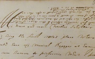 Aanhef brief van Constantijn Huygens aan Utricia Ogle ('My dear and most worthie scholler'), 6 juli 1643 (Koninklijke Bibliotheek, Den Haag).Auteur: Kees Kuiken