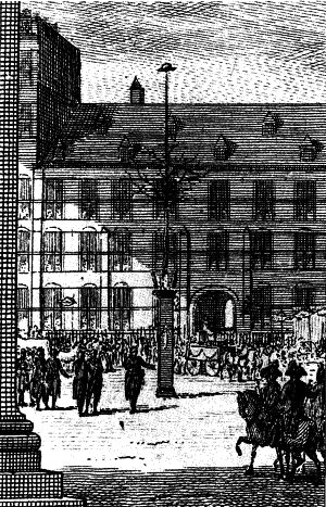 De optocht bij de nieuw geplante vrijheidsboom op het Buitenhof in Den Haag op 3 maart 1796. In het midden (rechts van de vrijheidsboom) burgeres van der Meer, als 'Vrijheid' gezeten op een kar. Gravure door J.C. Bendorp, 1797 (Atlas Van Stolk, Rotterdam).