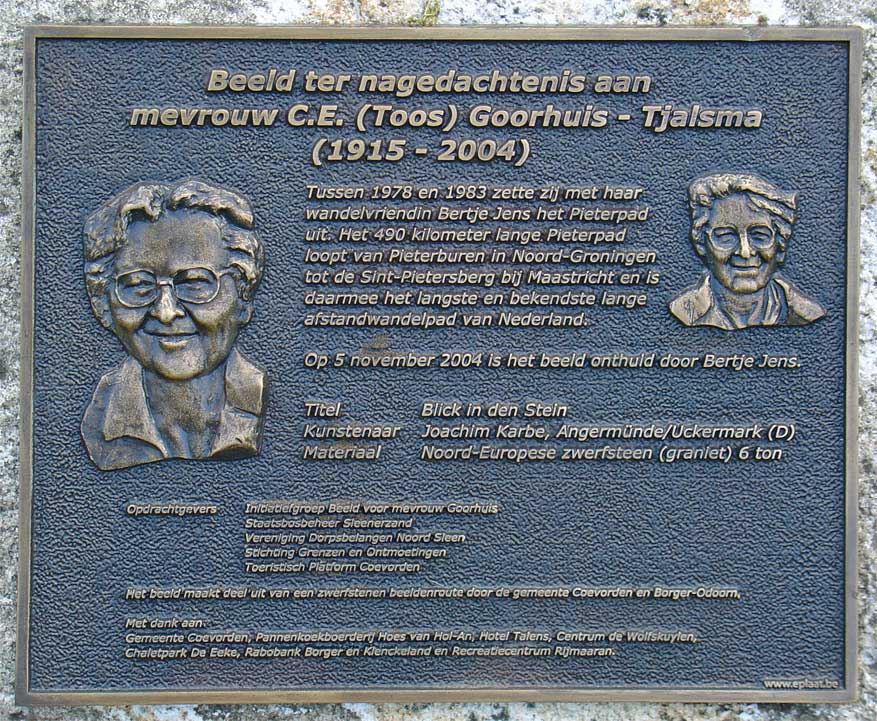 Plaquette voor Toos Tjalsma tussen Schoonoord en Sleen, door Joachim Karbe, 2004.